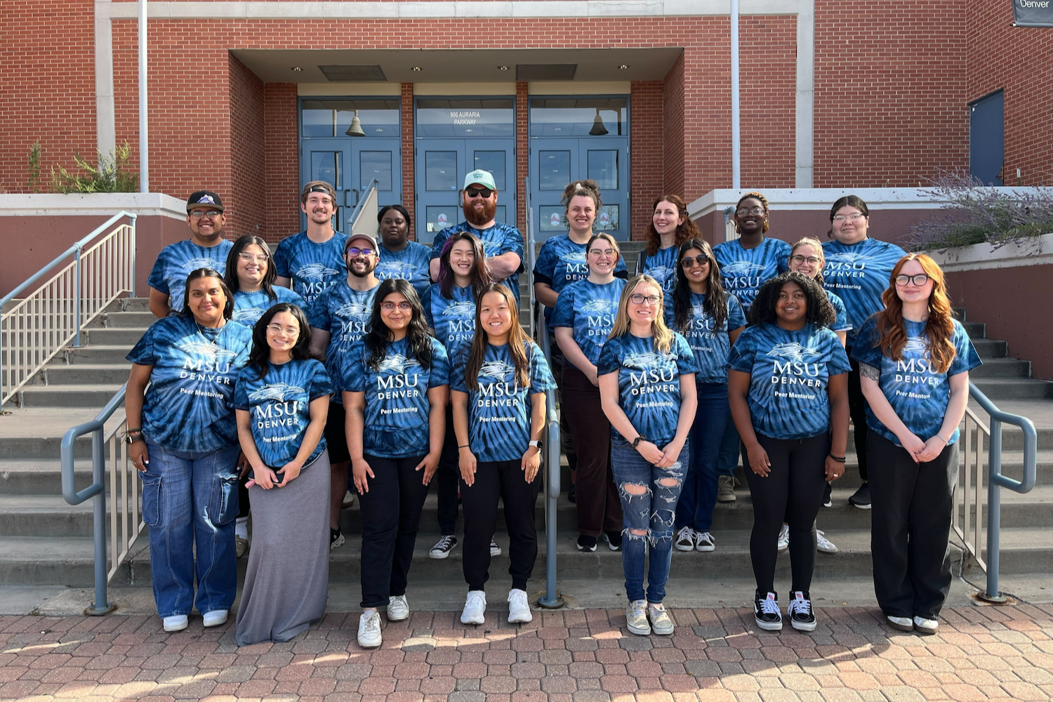 Ivy Campbell (front row, far right) and her fellow Morgridge Peer Mentors post outside Metropolitan State University in Denver, Colorado.